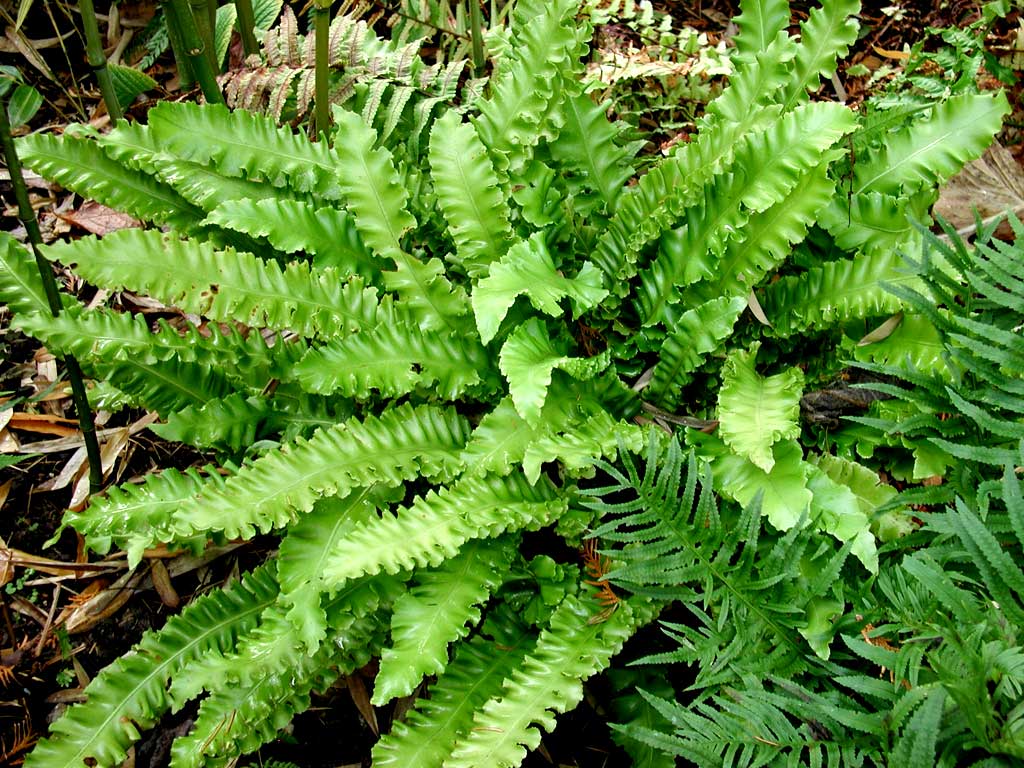 /*Asplenium scolopendrium 'Crispum Boltons Nobile'*/ Jeder kennt sie, die Hirschzungenfarne.Hier ein steriler,dadurch recht seltenes, gewelltes Exemplar.