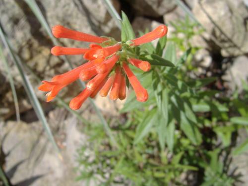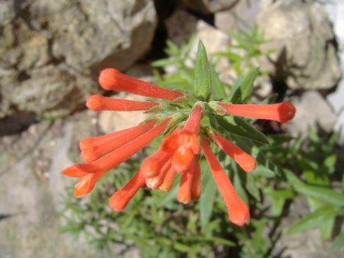 /*Bouvardia ternifolia (Cav.) Schltdl.*/ (Rubiaceae) aus den Bergen und Canyons im US-Südwesten (Texas, Arizona, New Mexico) und Mexiko (Chihuahua, Durango, Jalisco, Michoacán, Guerrero, Oaxaca) wird üblicherweise in USDA Zone 9 eingestuft. Die Pflanzen sind ziemlich tropisch und haben eine lange Blütezeit. Die Blüten sind Kolibriblumen, wen's interessiert, Blütenbestäuber ist die Kolibriart Cynanthus latirostris