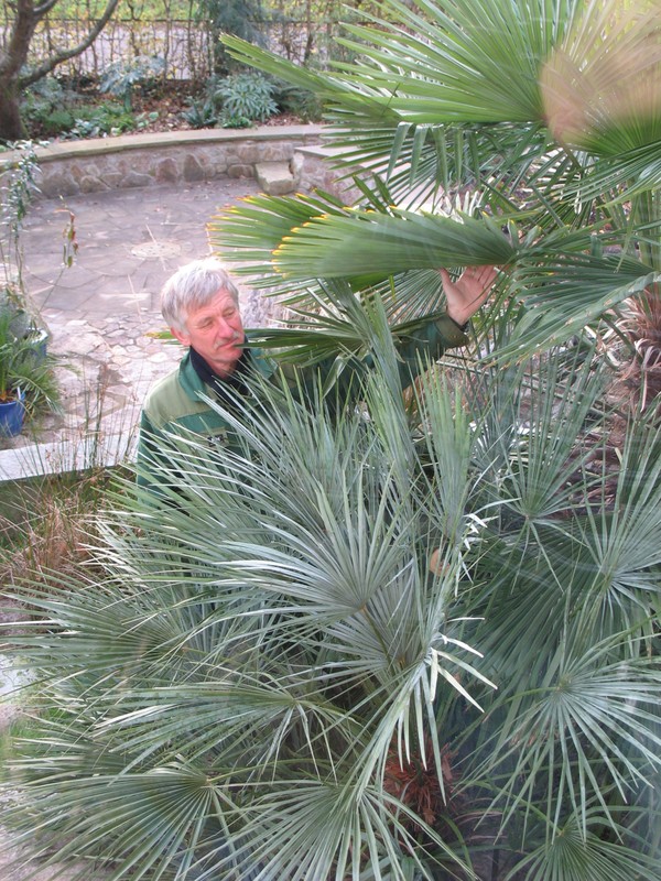 Die Cerifera ist aus einem kleinen Sämling (so schöne Großpflanzen wie heute anbeboten gabs damals noch nicht auf dem Markt) in ca 13 - 14 Jahren auf diese Größe herangewachsen. Im Winter 96/97, damals noch winzig und stammlos, hat sie sogar einen danebenstehende Trachycarpus sowie einen Rhapidophyllum überlebt.