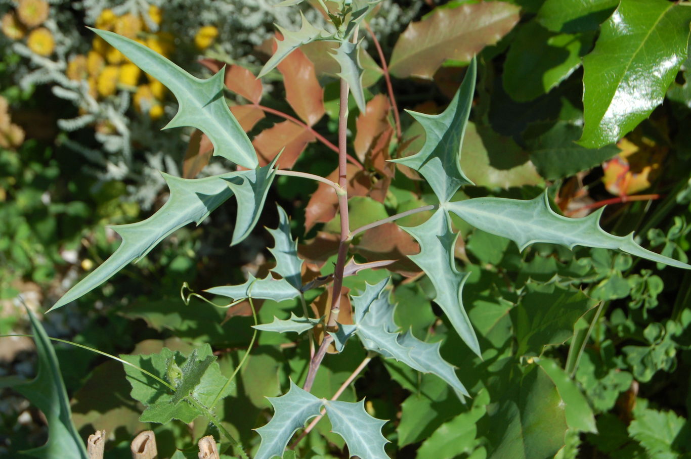 verschiedene Mahonienarten, blaugrau:/*Mahonia trifoliata Glauca*/#AM