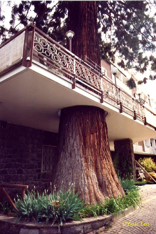 Diesen im Balkon integrierten Berg-Mammutbaum sahen wir 1991 in Meran.