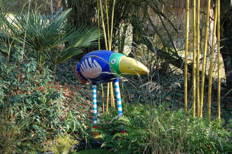 ein Zugeständnis an meine Frau: Unser Friedolin, ca 1m hoch, passt gut in einen Exotengarten, hier zusammen mit Phyllostachys sulphurea