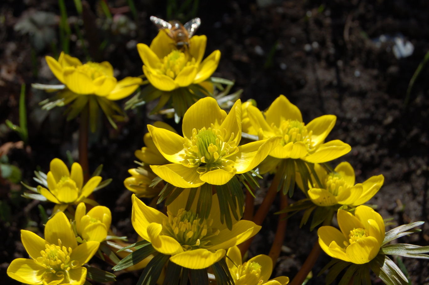 kommen auch die ersten Insektenbesucher.Hier auf /*Eranthis x tubergenii*/#AM