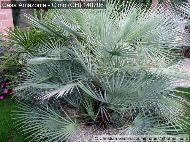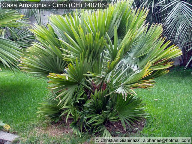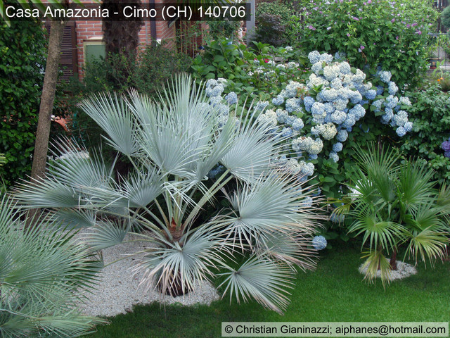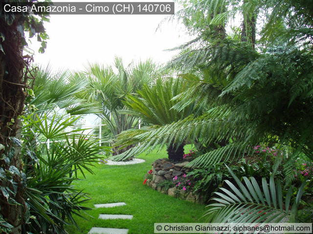 ... mit Schwerpunkt Palmen. Der Garten befindet sich in Cimo (Region Luganersee) im Südtessin. Er wurde von zwei Exotenfreunden, Frédy und Jean-Claude, angelegt. Bei meinem letzten Aufenthalt im Tessin hatte ich das Vergnügen, mit einem Freund, Gabriel, diesen Garten besuchen zu können. Obwohl nicht angemeldet, haben sich die Besitzer viel Zeit genommen, um uns den Garten zu zeigen; nach einer spannenden Führung durch den Garten endete der Abend mit interessanten Gesprächen über ... Palmen. Hier einige Bilder aus diesem Garten (mit Erlaubnis der Besitzer):
