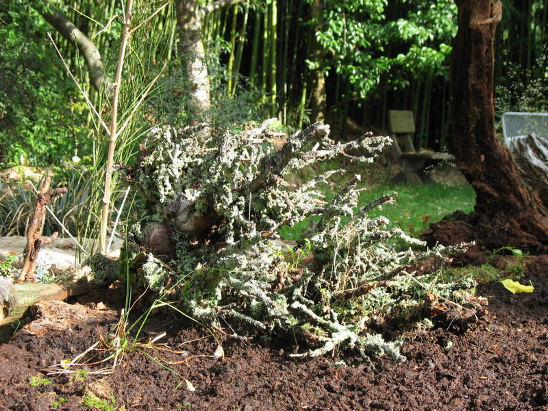 mit etwas Glück finden sich solch urige Unikate. Bei diesem völlig von flechten bewachsen Teil sind wir immer noch am Rätsel ob unter- oder oberirdisch gewachsen: Wurzel oder Hexenbesen???