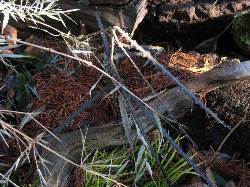 Pseudopanax ferox - im letzten Sommer neu gepflanzt - täglich misstrauisch gemustert, das Sägeblatt. Sagen kann man noch nichts, weder possitiv