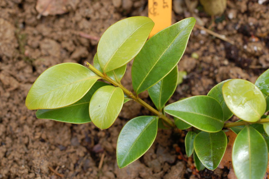 /*Buxus henryi*/ aus Zentral-China mit bis zu 6cm langen Blättern (angebl. bis Zone 6 hart)
