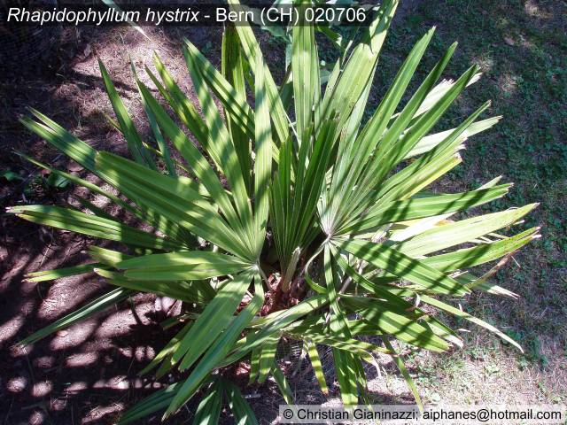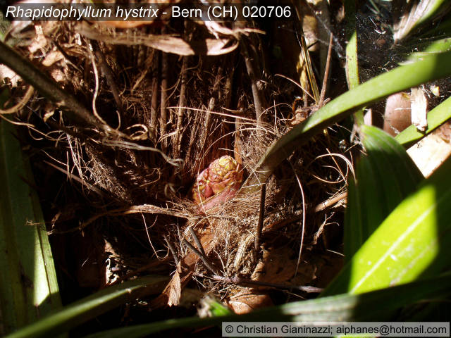 Hier ist die Rhapidophyllum. Nicht sehr schnellwüchsig, aber praktisch unverwüstlich.