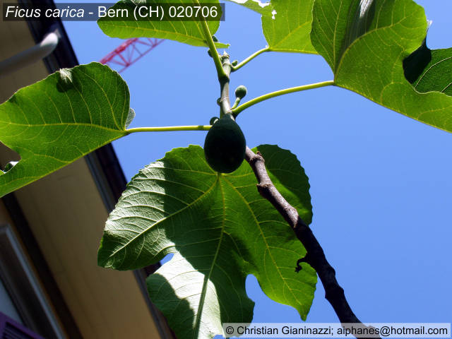 Im Garten stehen verschiedene Feigenbäume; bei diesem Exemplar gibt es jedes Jahr mindestens 2 Ernten. Die ersten Feigen (grosse Frucht unten) dürften, falls es temperaturmässig so weitergeht, bald reif sein. Die Frucht über der grossen Feige wird auch noch ausreifen, die oberste Frucht (als Knospe erkennbar) reift nur aus, falls der Herbst warm und sonnig ist.