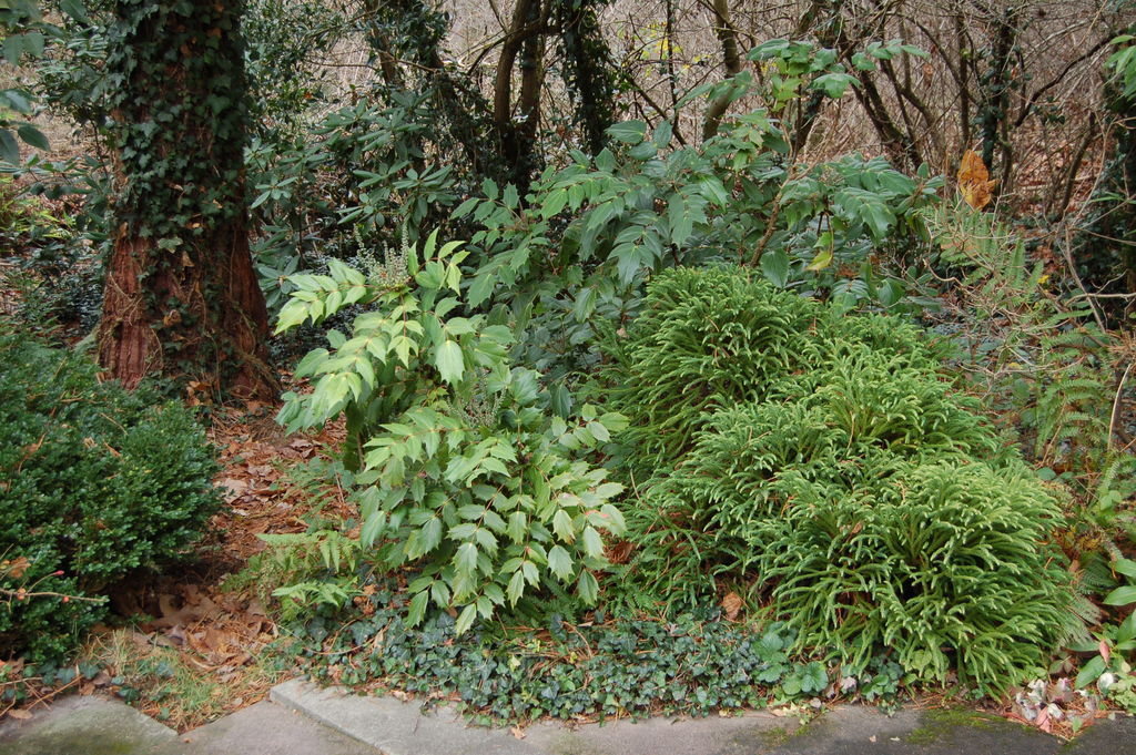 ca 30 Jahre alt: /*Cryptomeria japonica Globosa Nana*/ nenen Mahonia japonica und Sequoiadendron #AM