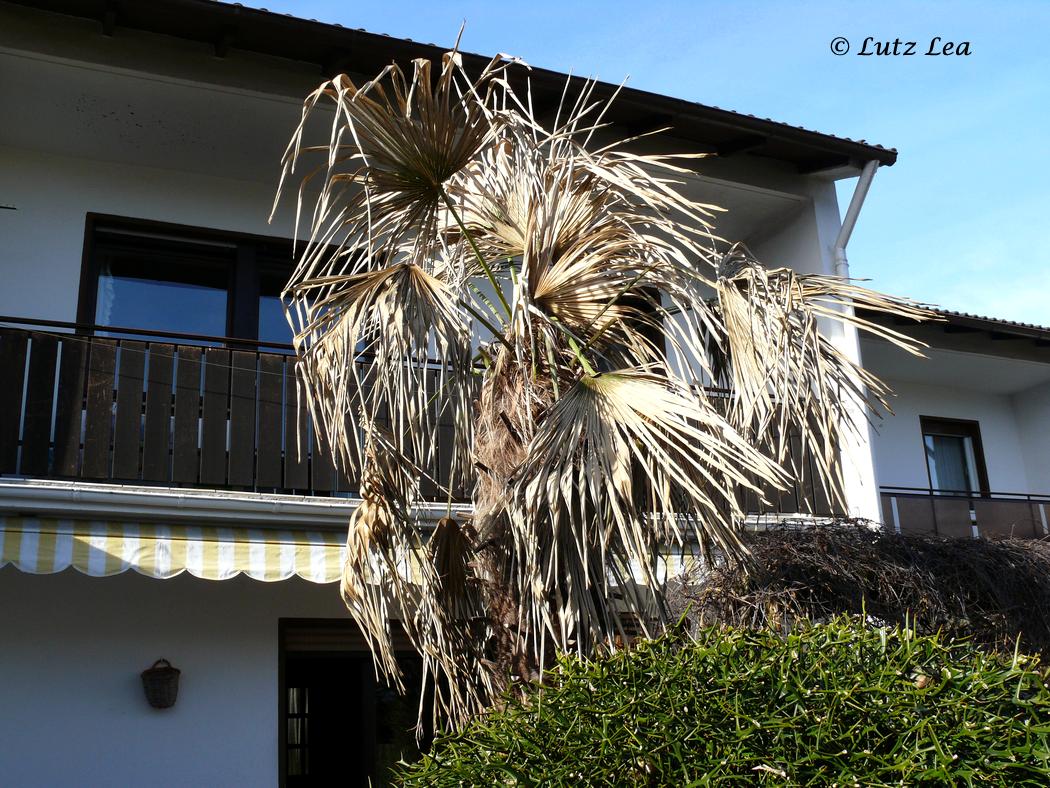 Ich bin sehr sicher und zuversichtlich das dieser Trachy an der Terrasse und alle anderen diesen Winter überleben und ab April mit neuem Blattwerk aufwarten. Wenn wir Glück haben folgen auch wieder mildere Winter und lassen das Laub heil und satte Kronen zu.