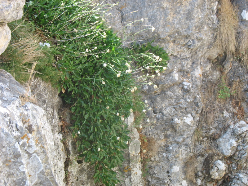 direkt unterhalb des Gipfel fand sich Globularia cambessedesii geschütz am oberen Ende eines tiefen Kalksinterschachtes