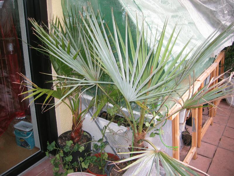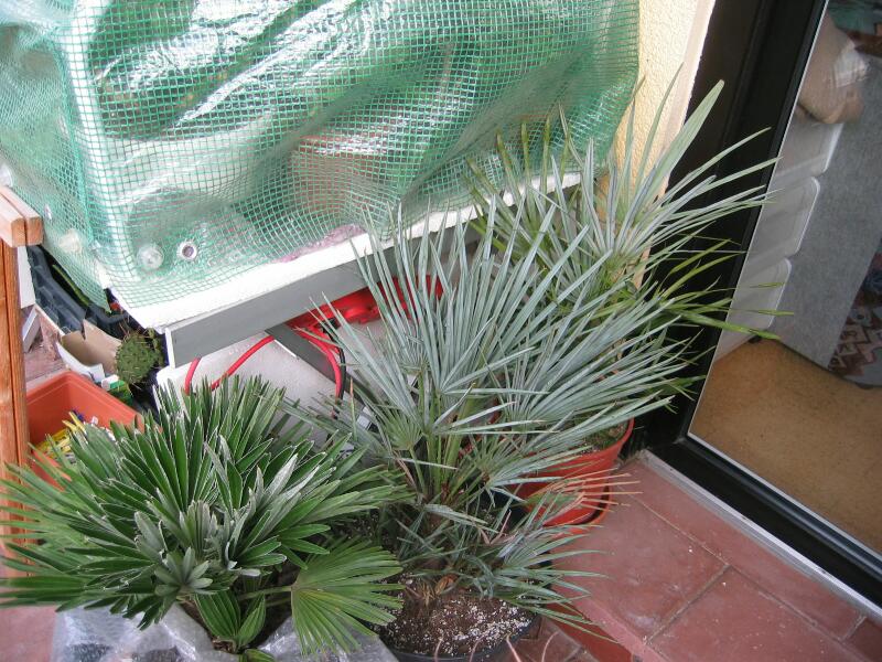 Bild 3 Links Chamaerops vulcano und rechts daneben 2 mal "cerifera"