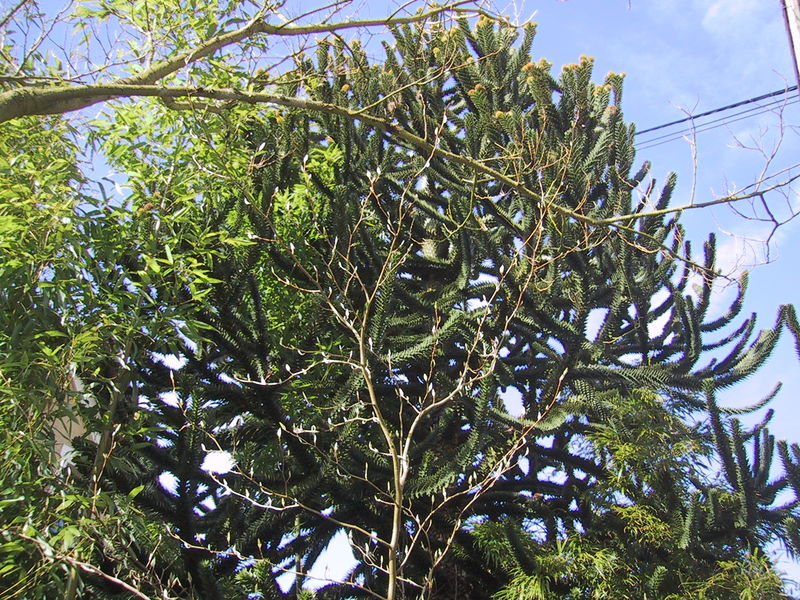 Heute habe ich zu einer ungünstigen Jahreszeit einen der ältesten privaten Exotengärten Deutschlands besucht:Hier nur ein paar Eindrücke,1.Araucaria araucana,haushoch hinter Albizzia julibrissin und Stewartia pseudocamellia