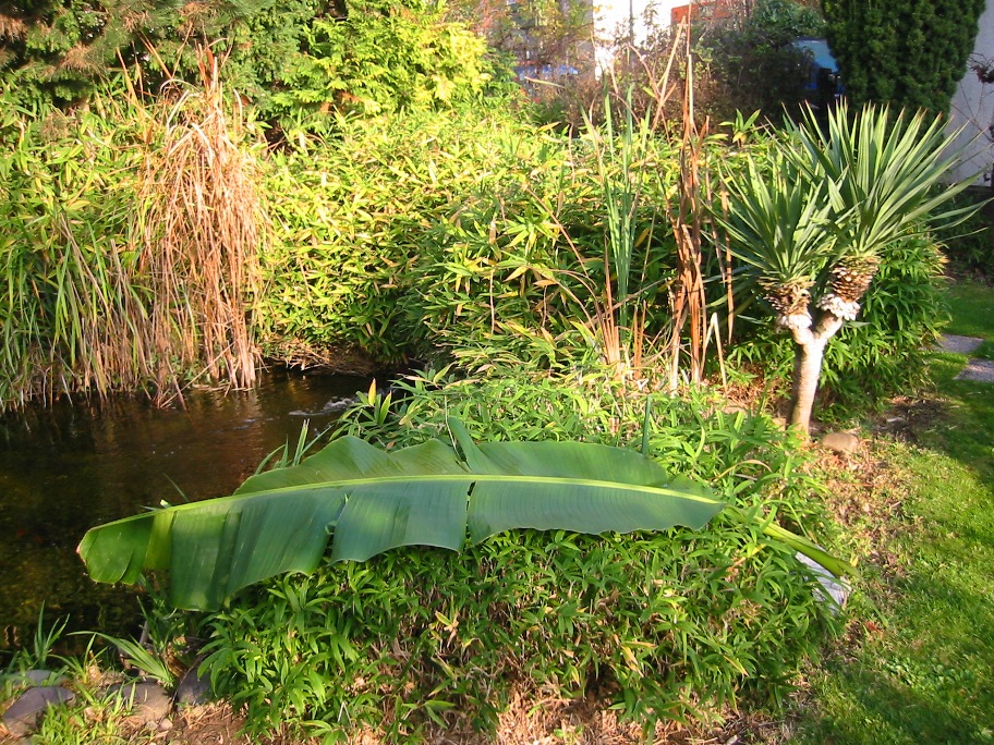 Ein riesiges über 2m langes Basjooblatt das schon vor über einer Woche bei starkem Wind abgebrochen war und seitdem hier liegt und immer noch recht gut aussieht