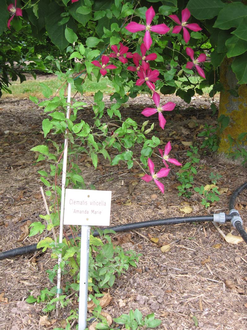 Besonders bei dieser Sorte hat mir die extreme Leuchtkraft gefallen. Alle Clematis wachsen übrigens an Magnolien hoch. Schöne Idee eigentlich, da so die Magnolien ein zweites Mal im Jahr zur Blüte kommen