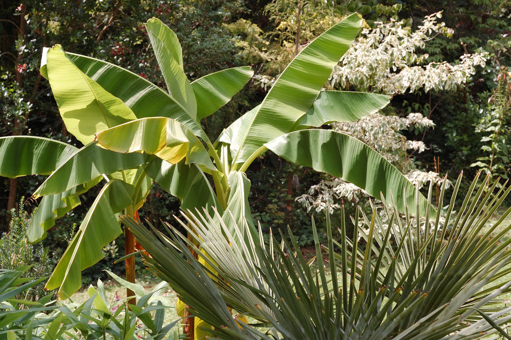 /*Musa basjoo*/ mit Trachycarpus und Cornus alternifolia Vaiegata