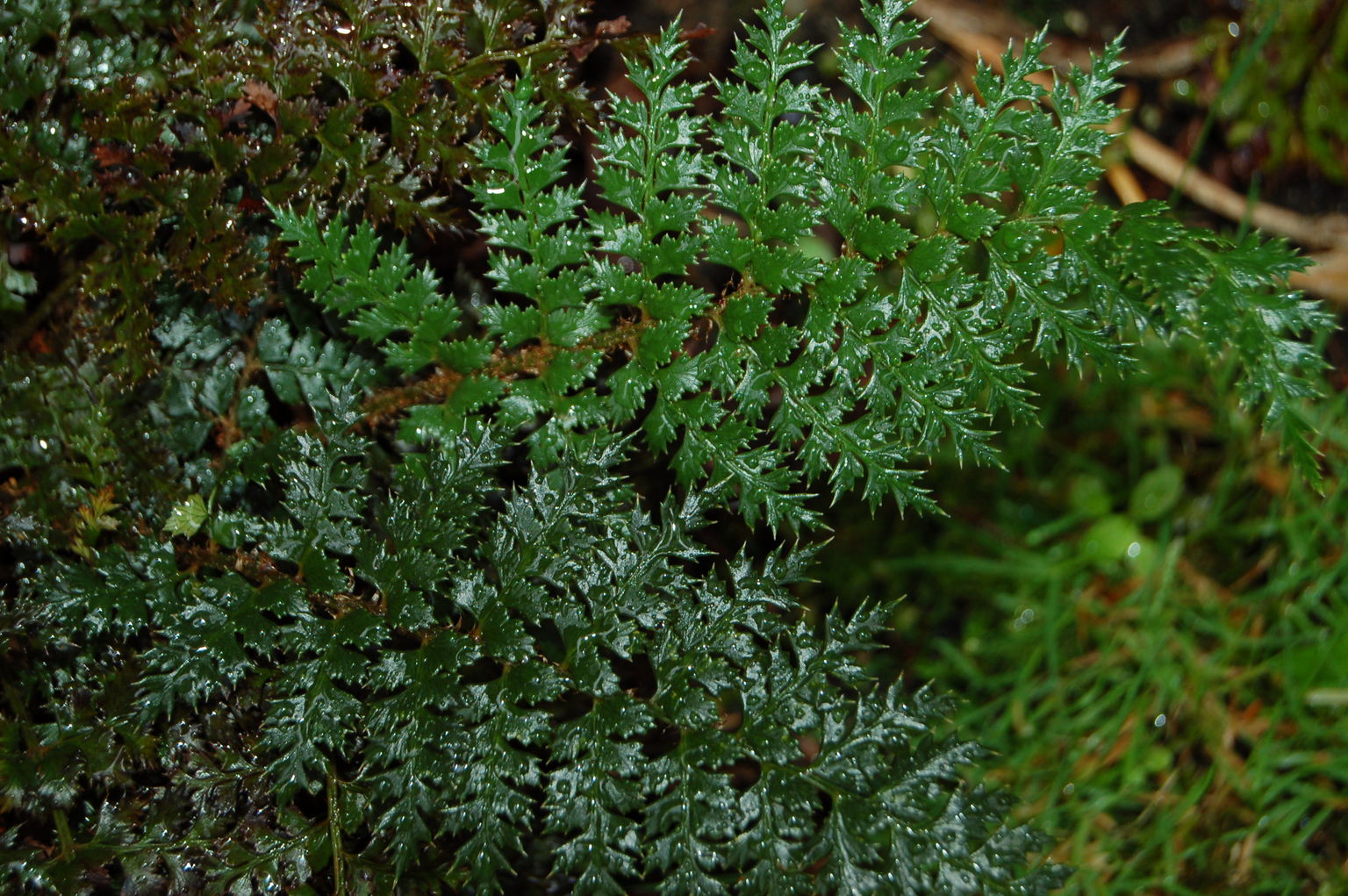 ist /*Polystichum vestitum*/, zumindest DIESE Sorte, 1m daneben steht ein weiterer P. vestitum, der deutlich heller ist!![]()