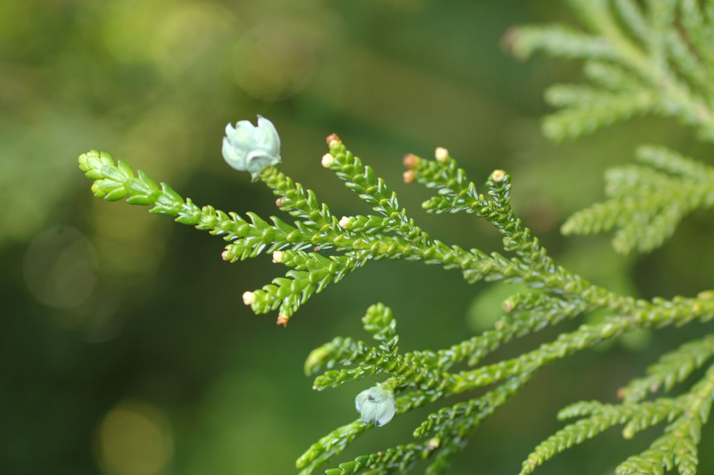 /*Thujopsis dolobrata*/ mit Fruchtstand sieht fast ein wenig künstlich aus