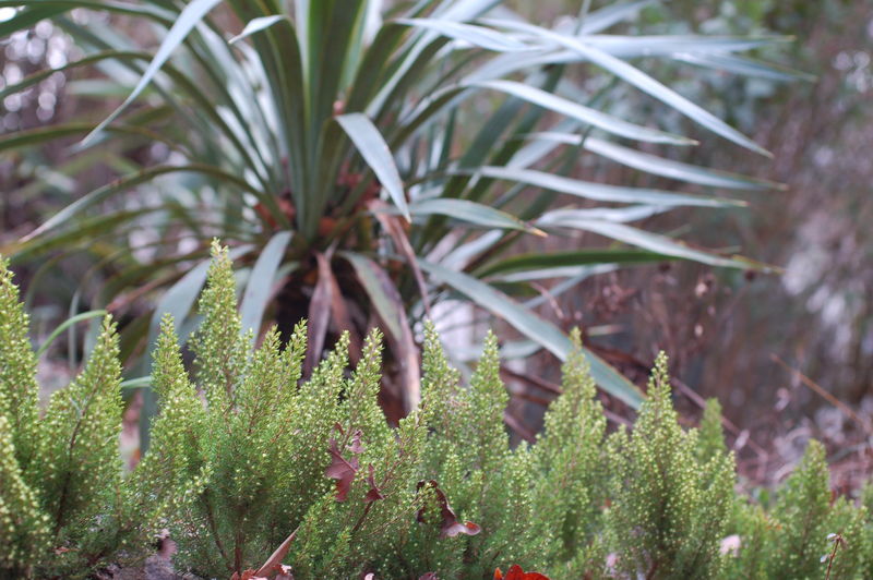 /*Erica arborea Albert's Gold*/ vor Yucca recurvifolia