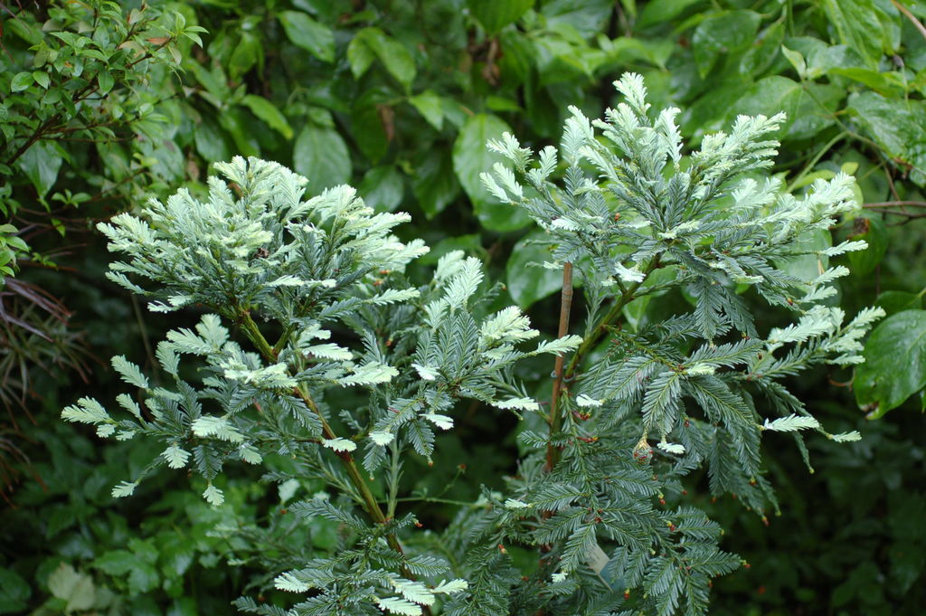 besitzt /*Sequoia sempervirens Glauca*/, keine andere Konifere fällt z.Zt. so auf!!