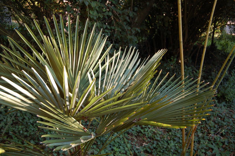 /*trachycarpus fortunei*/ spielt in seiner Blattform außerordentlich. Dieser hier wächst sehr langsam u. hat sehr große, auffallend starre Blätter (ähnlich T. wagnerianus, nur halt deutl. größer!!)
