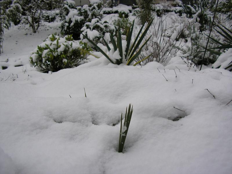 der stetige, leichte Schneefall über Nacht hat gut 5 cm gebracht, aber er taut jetzt bereits stark an.