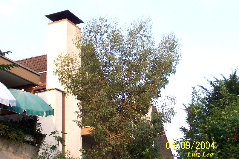 zeigt für heute als letztes Bild einen 'Eucalyptus gunnii' Baum, der in einem Garten bei Mainz bestens gedeiht, und schon recht große Ausmaße angeneommen hat, nachdem ja in den kalten 80er Wintern so viele schon mächtige Exemplare im Rhein-Main-Gebiet erfroren waren.