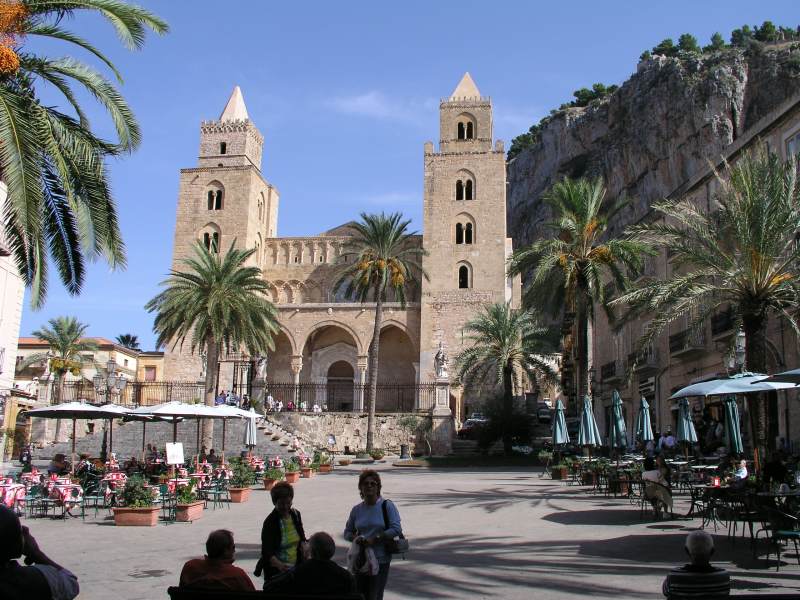 Dattelpalme mit Hintergrund in Cefalu (Sizilien/Nordküste)