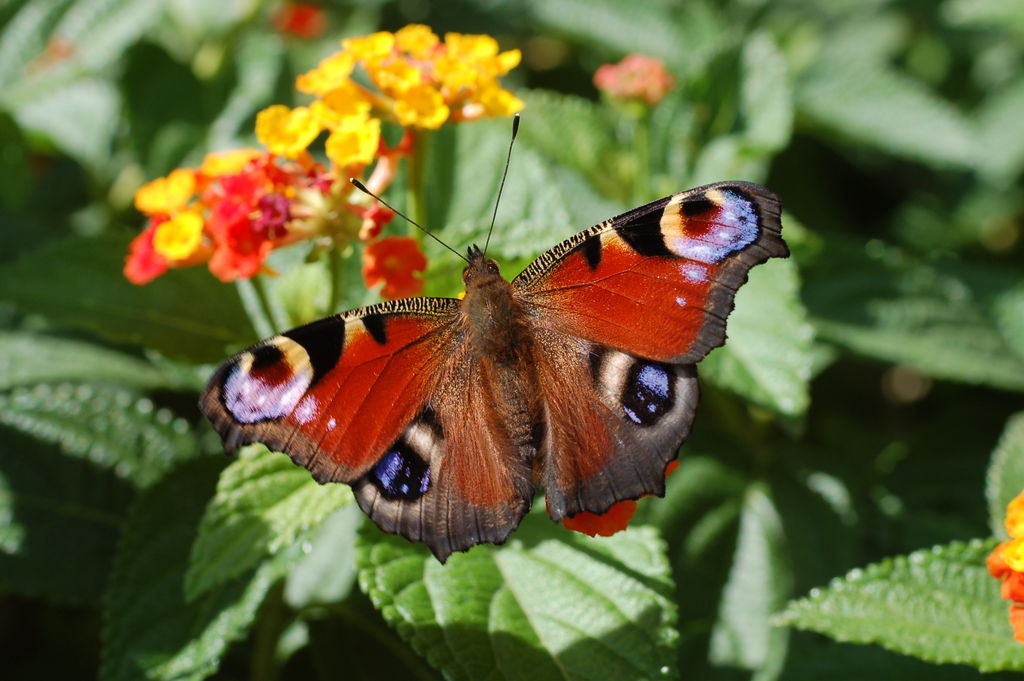 /*Lantana camara Tangerine*/ mit Tagpfauenauge