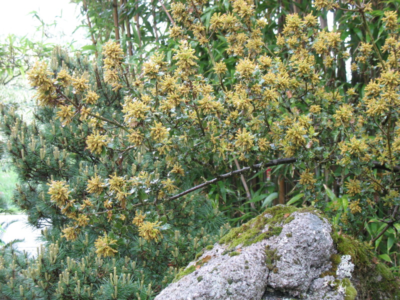 Quercus coccifera, wächst hier am boden- und wasserarmen Standort zwischen den Granitfindlingen ziemlich krüppelig - und das soll sie auch!