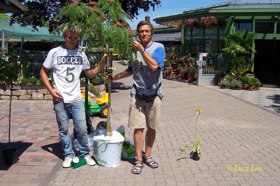 Ein sehr netter junger Verkäufer (Baumschulist) bei "Helmstetter" half uns beim Verpacken und einladen.