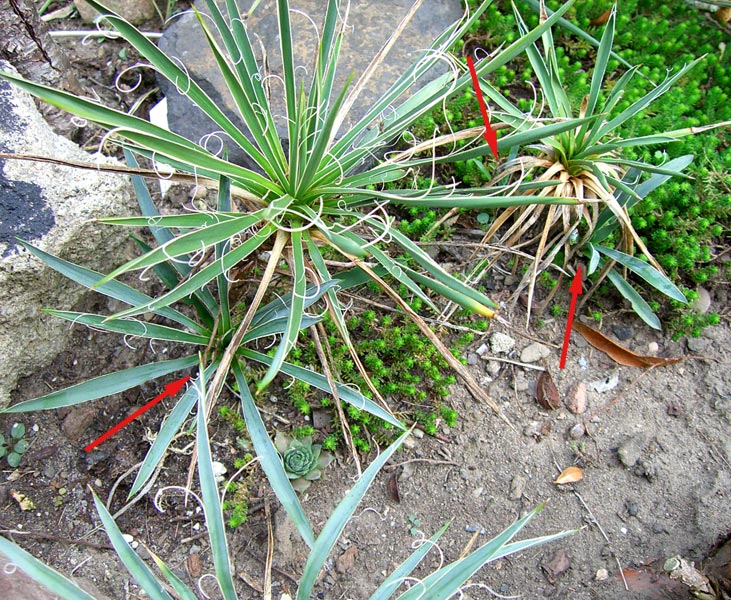 /*Yucca nana*/ haben dieses jahr erstmals 3 kindel gebildet