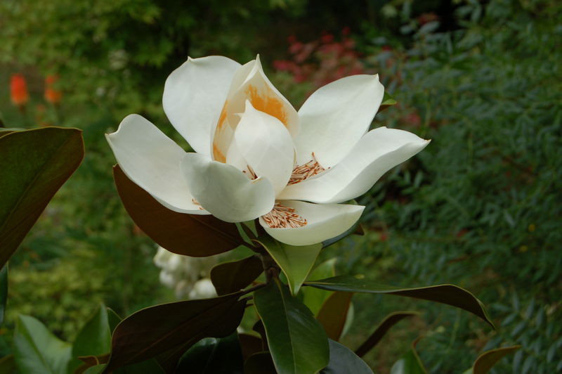 ....die phantastische, riesige /*Magnolia grandiflora Gallisonere*/