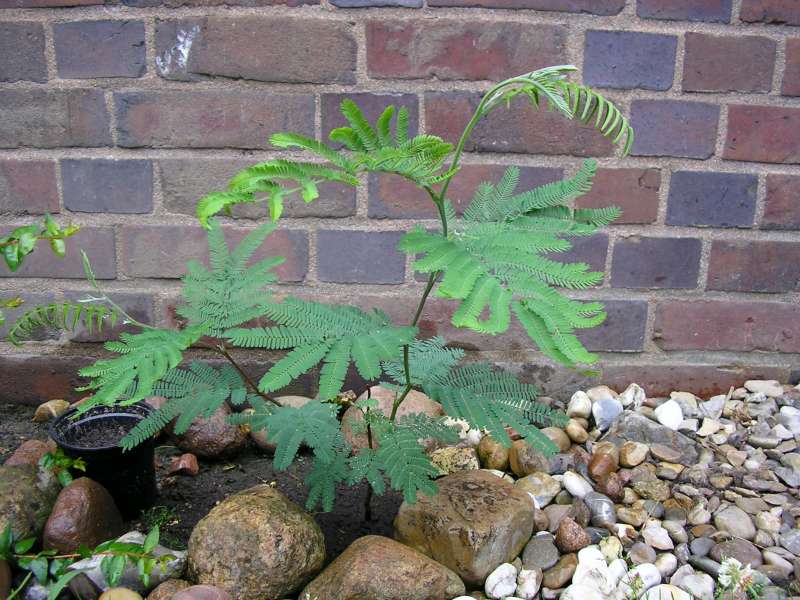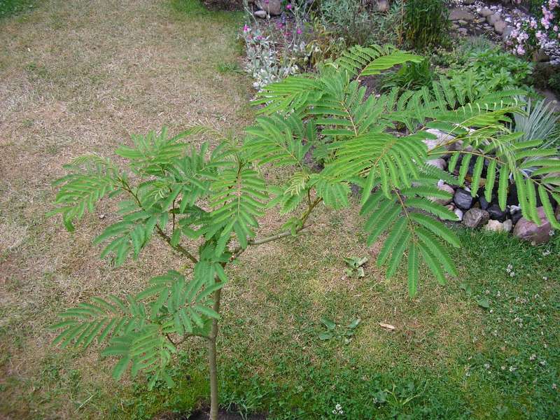 Albizia julibrissin- eine von 2 Pflanzen, war dieses Jahr nach dem kalten Frühjahr extrem spät mit der Blattentwicklung dran ( Mitte Juni).