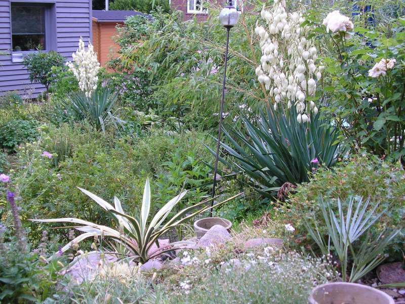 im Gegensatz zum Rhein-Main-Gebiet, wo die Yuccas schon verblüht sein sollen, ist bei meinen Y. gloriosa x recurvifolia gerade die Vollblüte erreicht.