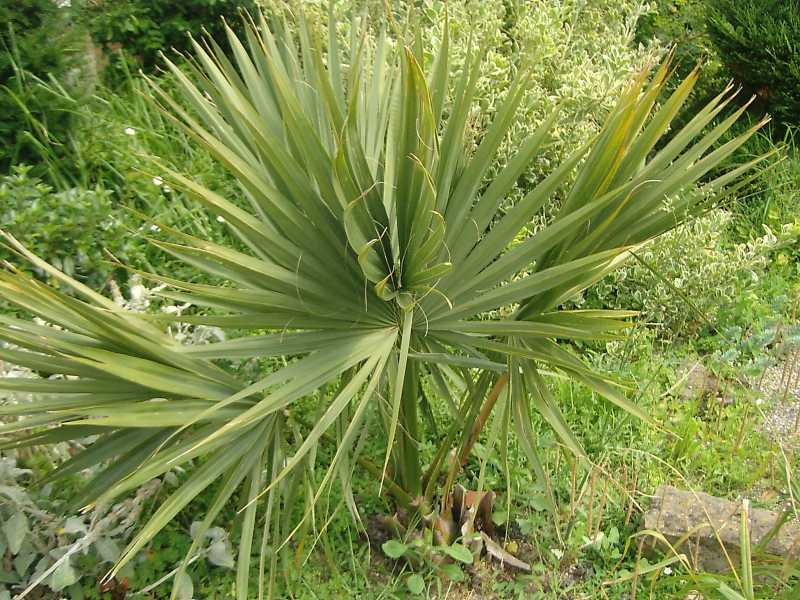 Sabal minor, der kriechende Stamm ist sehr stark ausgeprägt und dick