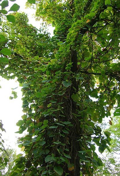 lianen wie im urwald, eine alte eiche bis in die wipfel total umschlungen mit /*ARISTOLOCHIA DURIOR*/ der pfeifenwinde