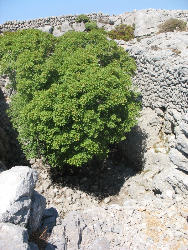 einem großen herausgearbeiteten und befestigten Rechteck, wächst ein kapitaler Acer granatense der den Raum fast ausfüllt, aber praktisch nicht zu sehen ist, wenn man aus der Ferne über das Plateau schaut