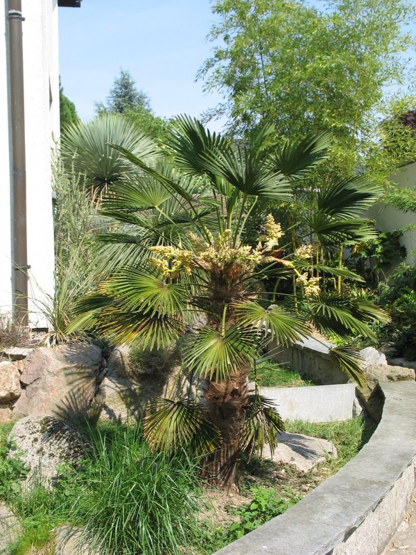Dass ich so selten von Palmen in meinem Garten berichte liegt sicher daran, dass sie einfach so selbverständlich vor sich hin wachsen. Keine Probleme wie mit vielen anderen Pflanzen, Standort, Bodenbeschaffenheit, ph-Wert etc. etc. - einfach anspruchslos, na wie - wie vieleicht Bambus, ohne dessen Macken zu haben wie Laubfall, ausuferndes Rhizomwachstum - solange einfach nur der Winter im Rahmen bleibt! Die allermeisten Exoten sind schwieriger.
