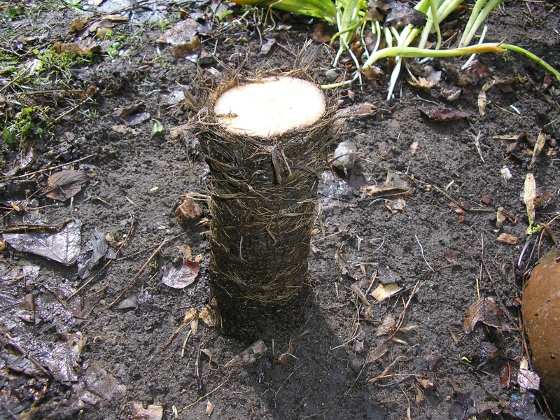 Übrig blieb der ca. 20 cm hohe feste Stammteil, immerhin nicht ganz bis zum Boden weggegammelt!