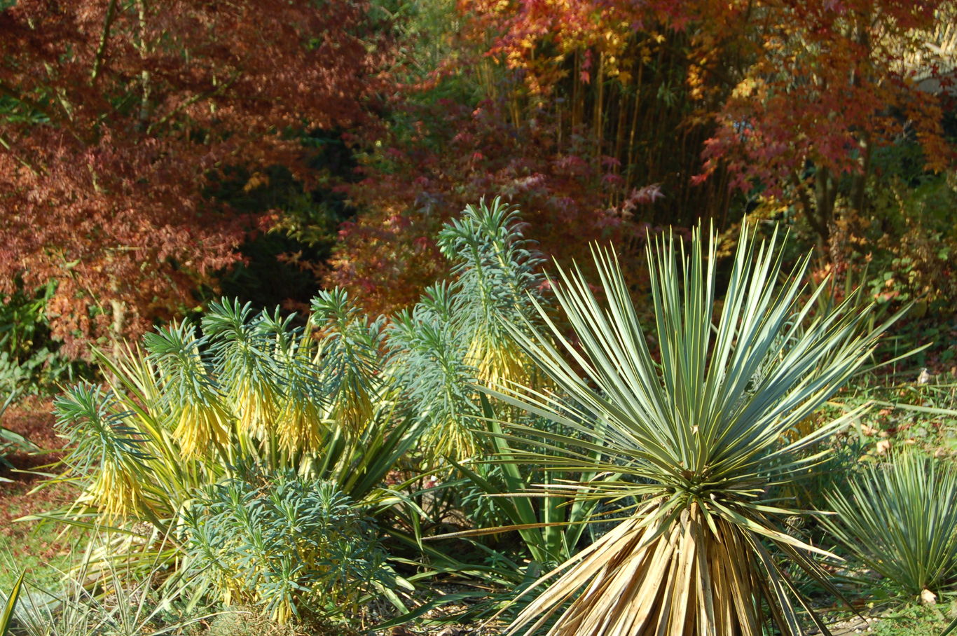 /*Euphorbia caharacias wulfenii*/ erscheint auch etwas "panaschiert"