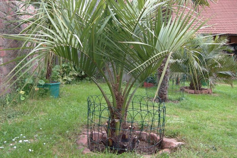 PS:Unten ein Bild von meiner Butia.Hab vielleicht etwas zuviel abgesäbelt.Aber ich wollte endlich mal besser mit dem Rasenmäher drumherum fahren können.