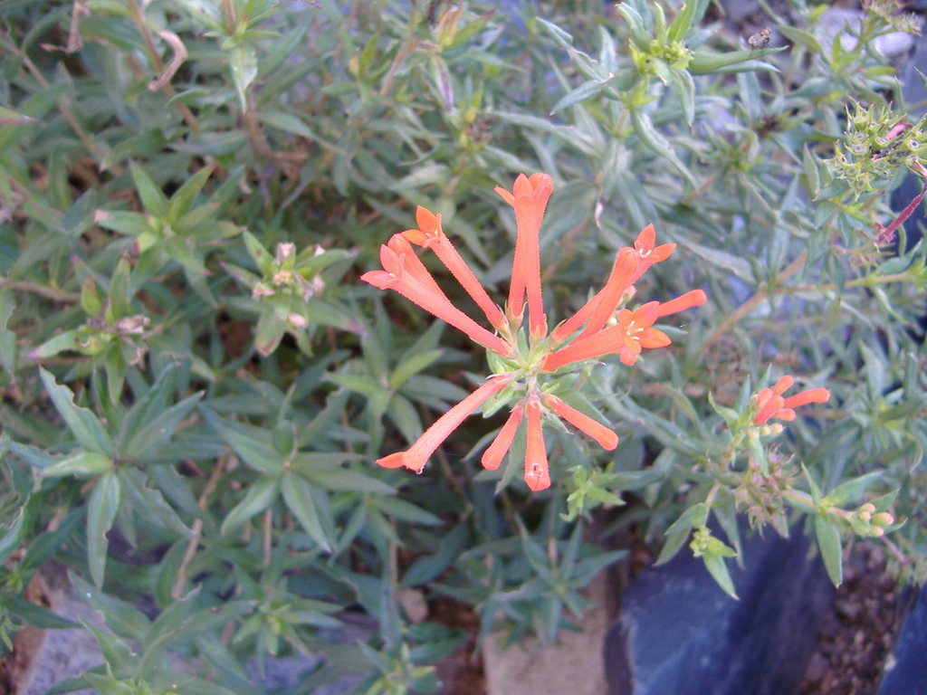 im Beitrag zur /*Bouvardia ternifolia*/weiter unten hatte ich von einer Pflanze berichtet die im Garten eines Freundes im Erfurter Umland (mit Schutz - bei Außentemp's bis um -15°) bereits überwintert hat. Leder war es schon ziemlich spät und deshalb nicht die besten Lichtverhältnisse.