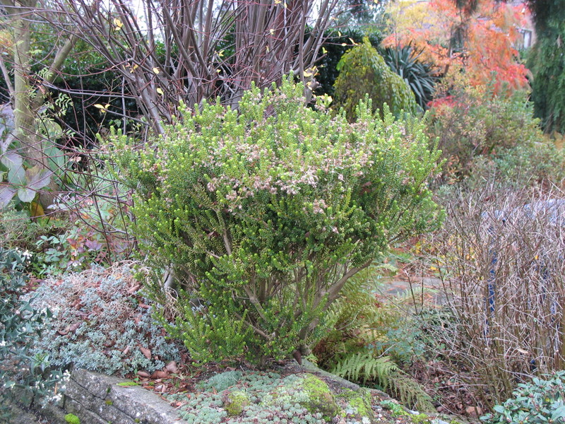 Olearia nummulariifolia ist wohl die winterhärteste dieser arten- und formenreichen Gattung, noch dazu kleinwüchsig. Ganz ideal also für unsere zu kleinen Liebhabergärten!