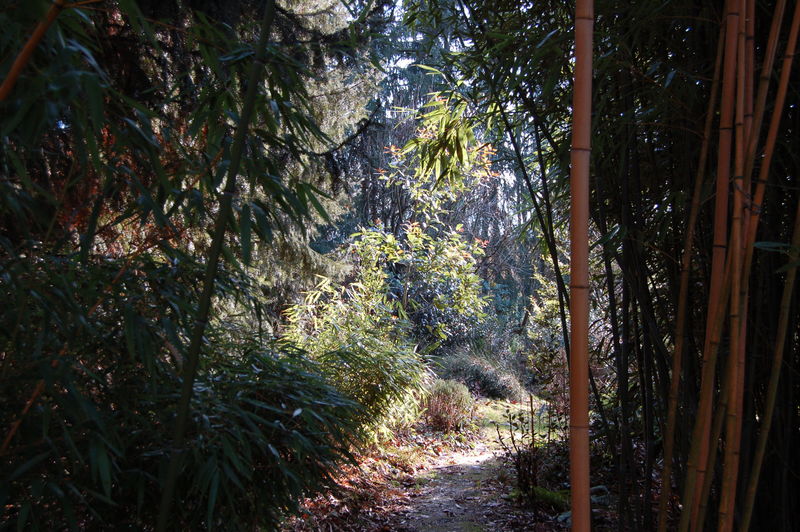 1./*Phyllostachys vivax aureocaulis*/-Dschungelpfad, im Hintergrund die Loquat-Eiche