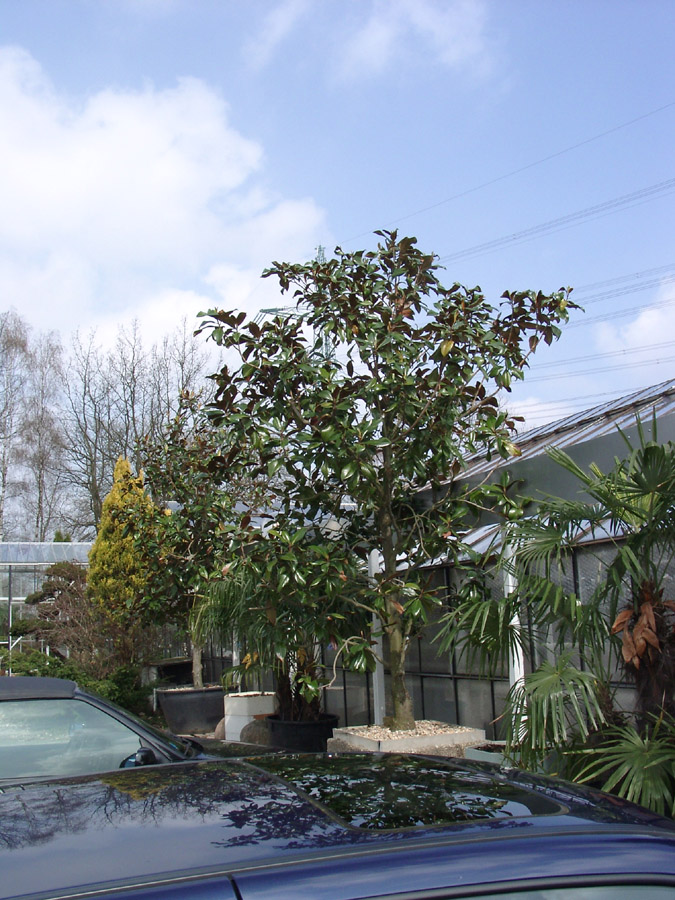 Und hier eine von zwei großen Magolia grandiflora (nehme ich an)