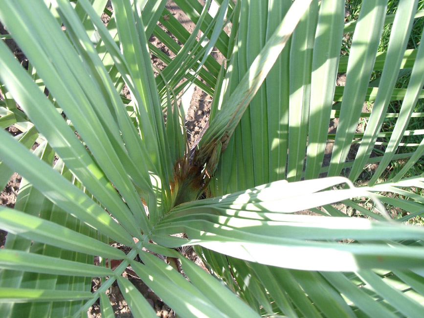 ...weil es im August noch Überraschungen geben kann. Erst nach Ablösung der beiden ersten Blätter konnte man die Fäulnis im Speer meiner Butia eriospatha erkennen.