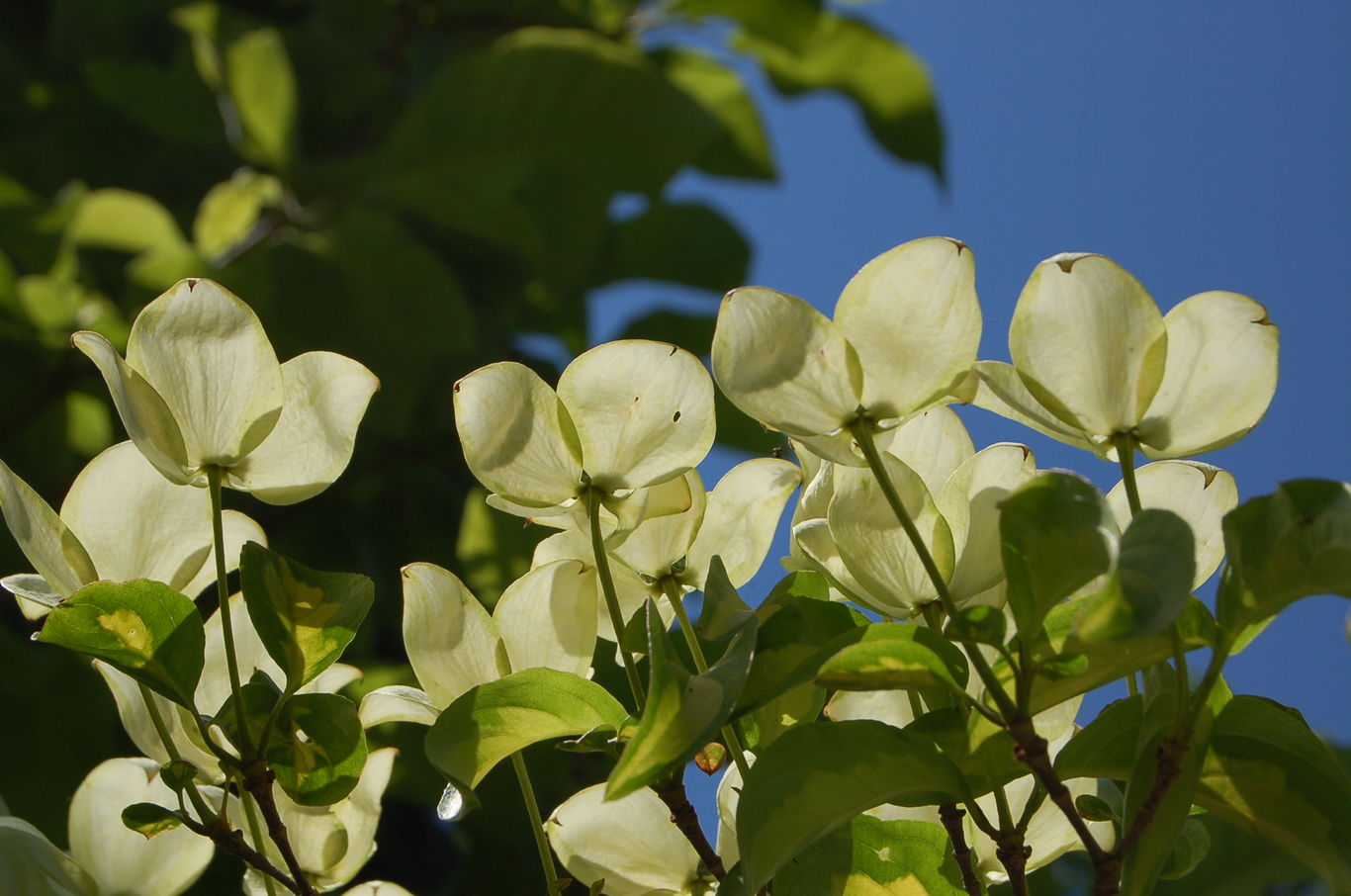ein großer Teil der panaschierten Cornus kousa nimmt mit der Zeit eine Rosa-Farbe an!
