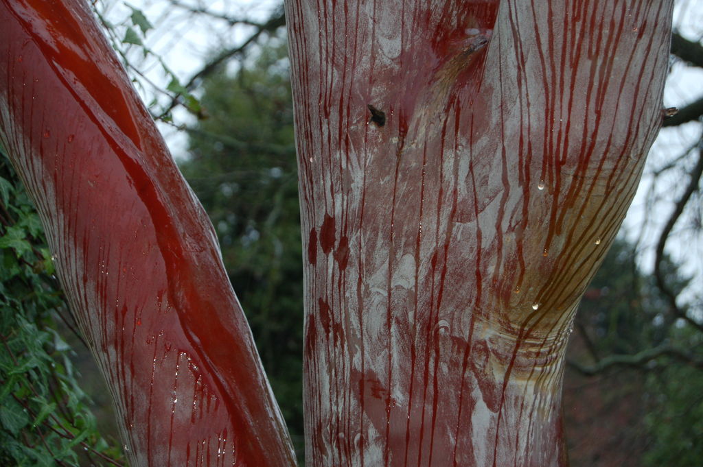 steht im Palmengarten Frankfurt:/*Arbutus menziesii*/ mit phantastischer Rinde!!!!